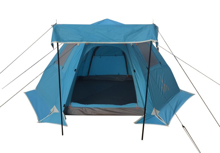 چادر اتومات 4 نفره نصب آسان ضد آب دارای پنل تهویه وزن 5500 گرم ابعاد باز شده 260×225×140 ابعاد بسته 76×18 رنگ سبز طوسی آبی